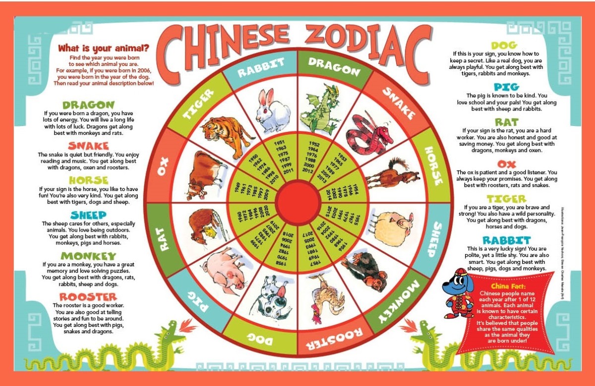 There are 12 zodiac signs and the order goes like this: In order, they are the rat, ox, tiger, . Chinese people associate each animal with certain characteristics. The chinese zodiac is a traditional classification scheme based on the lunar calendar that assigns an animal and its reputed attributes to each year . Twelve animals represent the chinese zodiac signs (or sheng xiao, translating to born + resemblance);